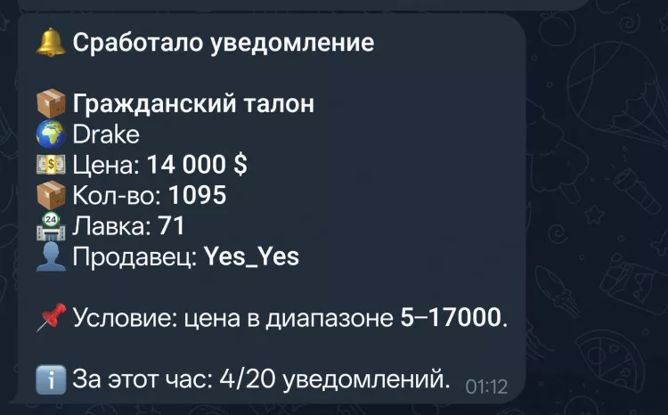 Уведомления, если товар продают дешевле, чем его скупают